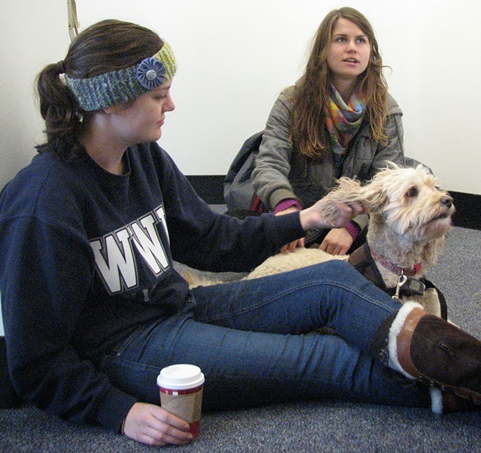 I have written before about "wellness" and sustainability, and it should come as no surprise that the human health & well-being aspect of sustainability is of huge importance to me. As I have said before, wellness and sustainability are intrinsically connected, and the better we feel, the better everything is in our lives, including our work and our relationships. With that in mind, I wanted to remind you that Western Libraries is lucky to have four more days of visits from the Pet Partners program, here to help the Western community "de-stress" during Finals Week.